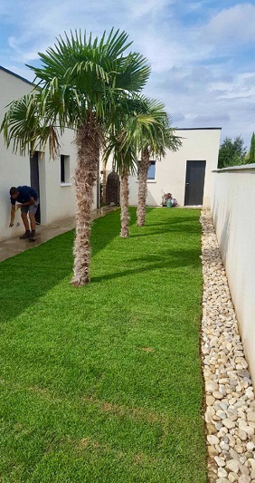 Installation d’un arrosage automatique après étude et gazon de placage.